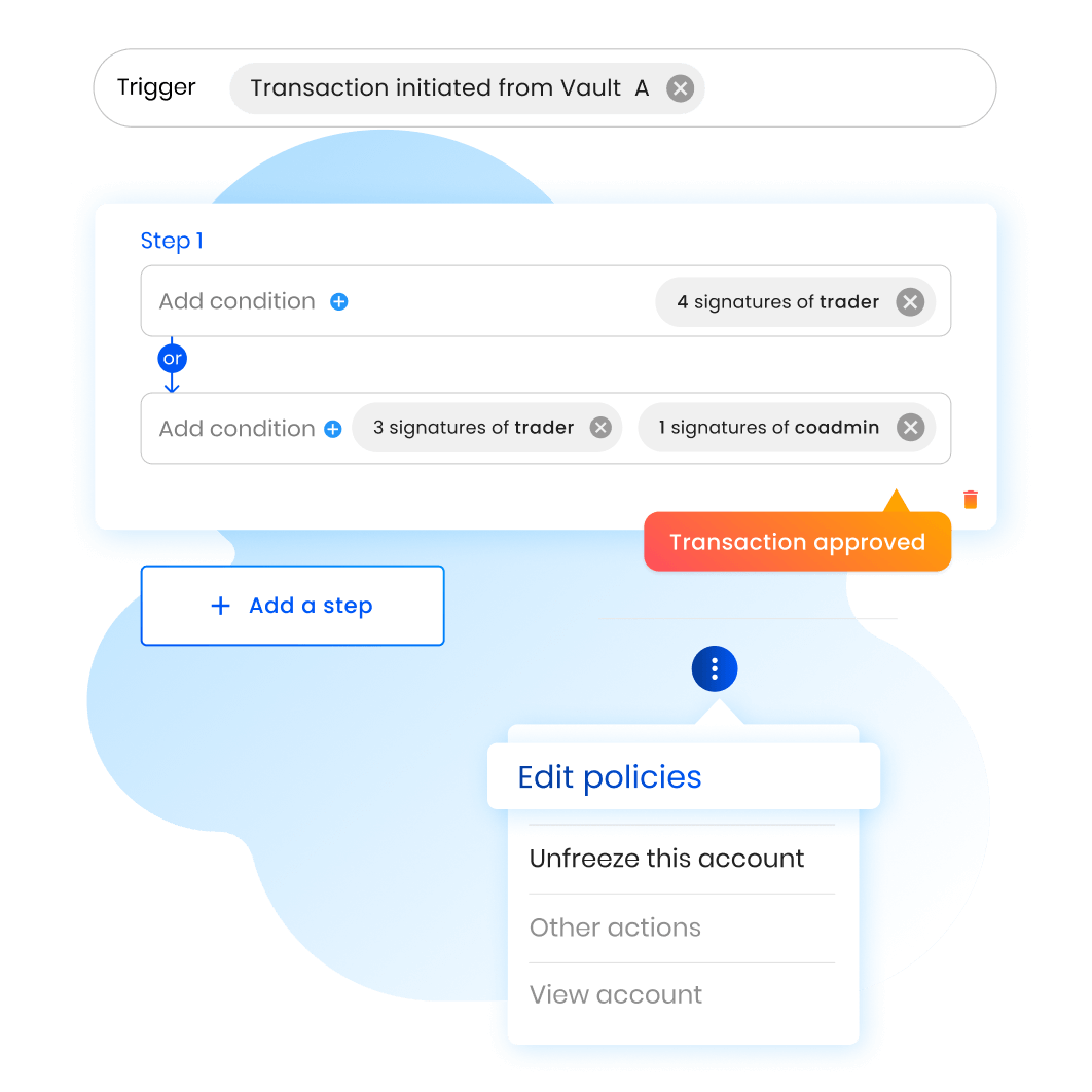 Scale use cases beyond custody with a versatile governance framework covering all administrative processes, transactions and assets managed on the platform, as well as those externally managed on exchanges and DApps.